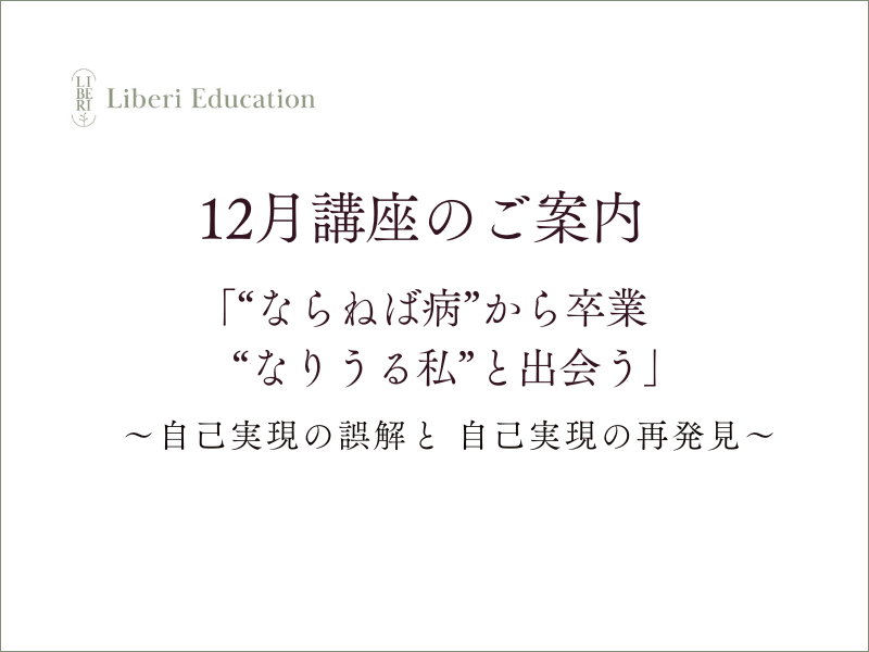「人間ってなんだろう」を統合的に学びたい人のための講座です。親御さん、教育者はもちろん、「学びたい」と思うすべての大人が対象です。分子栄養学、深層心理学、発達心理学、自律神経学などが基礎にある講座です。