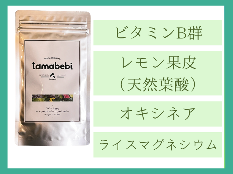 「タマベビ」は、日本妊活協会からの依頼で、共にATOPIXを運営している、我らが菊池先生が作られたサプリメントです。内容はビタミンB群を主とし、植物性のポリフェノールやマグネシウムが配合されています。